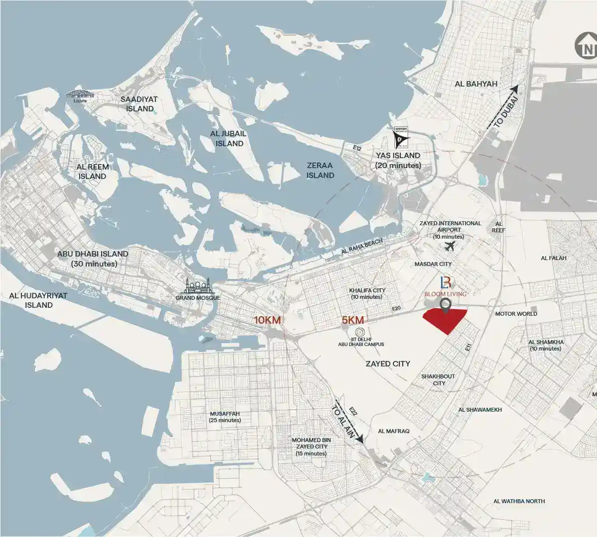 • Prime location within Bloom Living at Zayed City offering seamless connectivity.