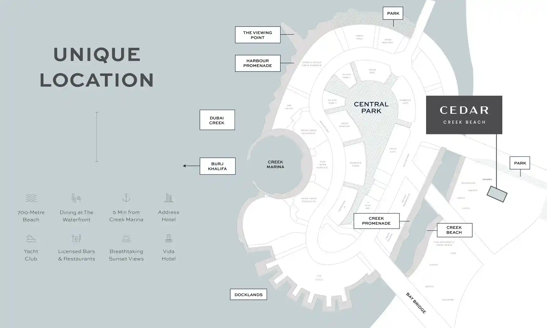 Cedar at Dubai Creek Harbour offers apartments for sale in a prime waterfront location. Residents enjoy easy access to Downtown Dubai, Burj Khalifa, and Creek Marina, while still being connected to Al Maktoum International Airport in under 40 minutes. The development combines modern living with practical layouts and quality finishes, making it ideal for families and professionals seeking comfort and convenience in a well-connected community.