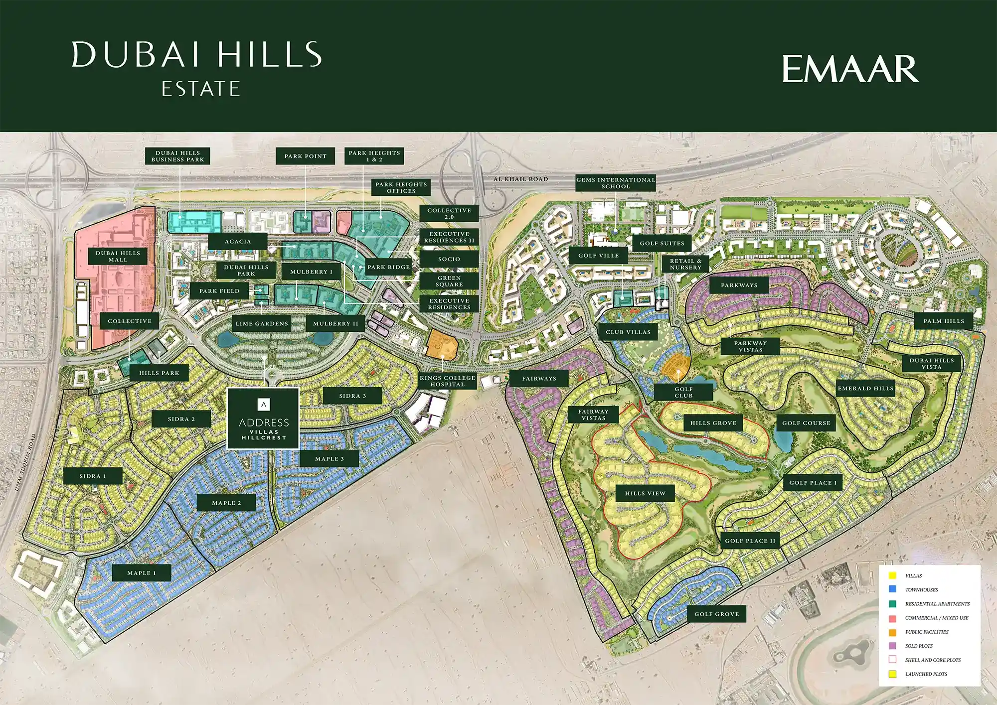 Emaar Address Hillcrest Villas feature a thoughtfully designed master plan that blends premium living with connectivity across Dubai Hills Estate. Landscaped green spaces, pedestrian-friendly walkways, and secure parking enhance residents’ comfort.