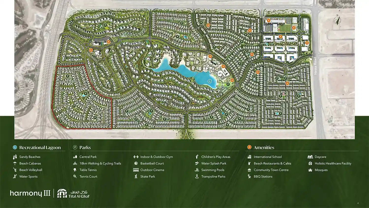 The master plan of Harmony Villas Phase 3 is crafted to support a nature-inspired, community-focused lifestyle. Villas are thoughtfully positioned around lush green spaces, lagoon areas, and pedestrian pathways, encouraging outdoor living and social interaction.