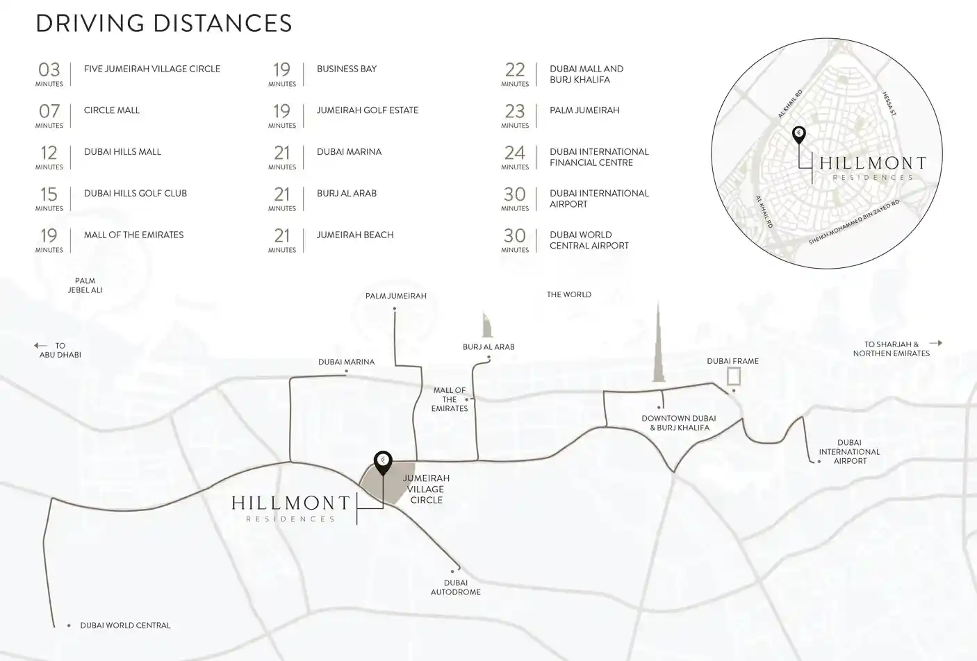 Hillmont Residences at JVC offers modern apartment living with a choice of studios, 1, 2, and 3-bedroom units. Each home is designed with practical layouts and contemporary finishes, providing comfortable and functional spaces for everyday life.