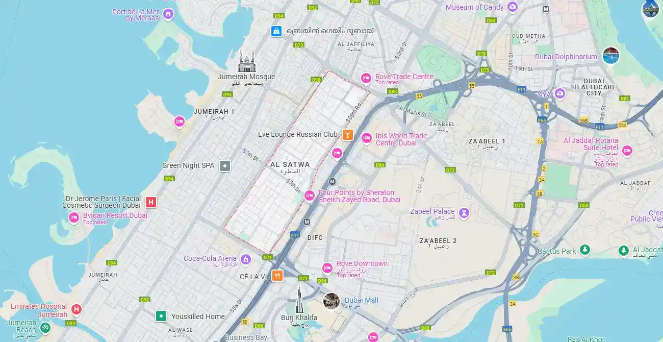 JAD 288 Residences by JAD Global Development is ideally located in Al Satwa, a central district that connects residents to the best of Dubai’s lifestyle and business destinations. This location provides unmatched convenience, placing you just minutes away from major landmarks, retail hubs, schools, and entertainment venues. Its strategic setting makes it perfect for professionals and families who value accessibility and urban comfort.
