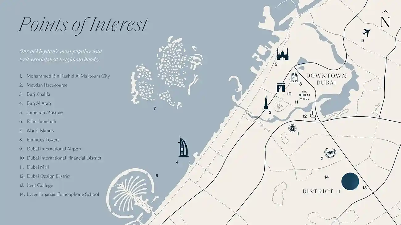 Opal Gardens is strategically located in Mohammed Bin Rashid City (MBR City), District 11, offering seamless access to Dubai’s major landmarks. Its prime position near Mohammed Bin Zayed Road connects residents to Downtown Dubai, Dubai Creek Harbor, and Dubai International Airport within minutes. Surrounded by top schools, hospitals, malls, and entertainment zones, the location ensures convenience and connectivity for every lifestyle need.
