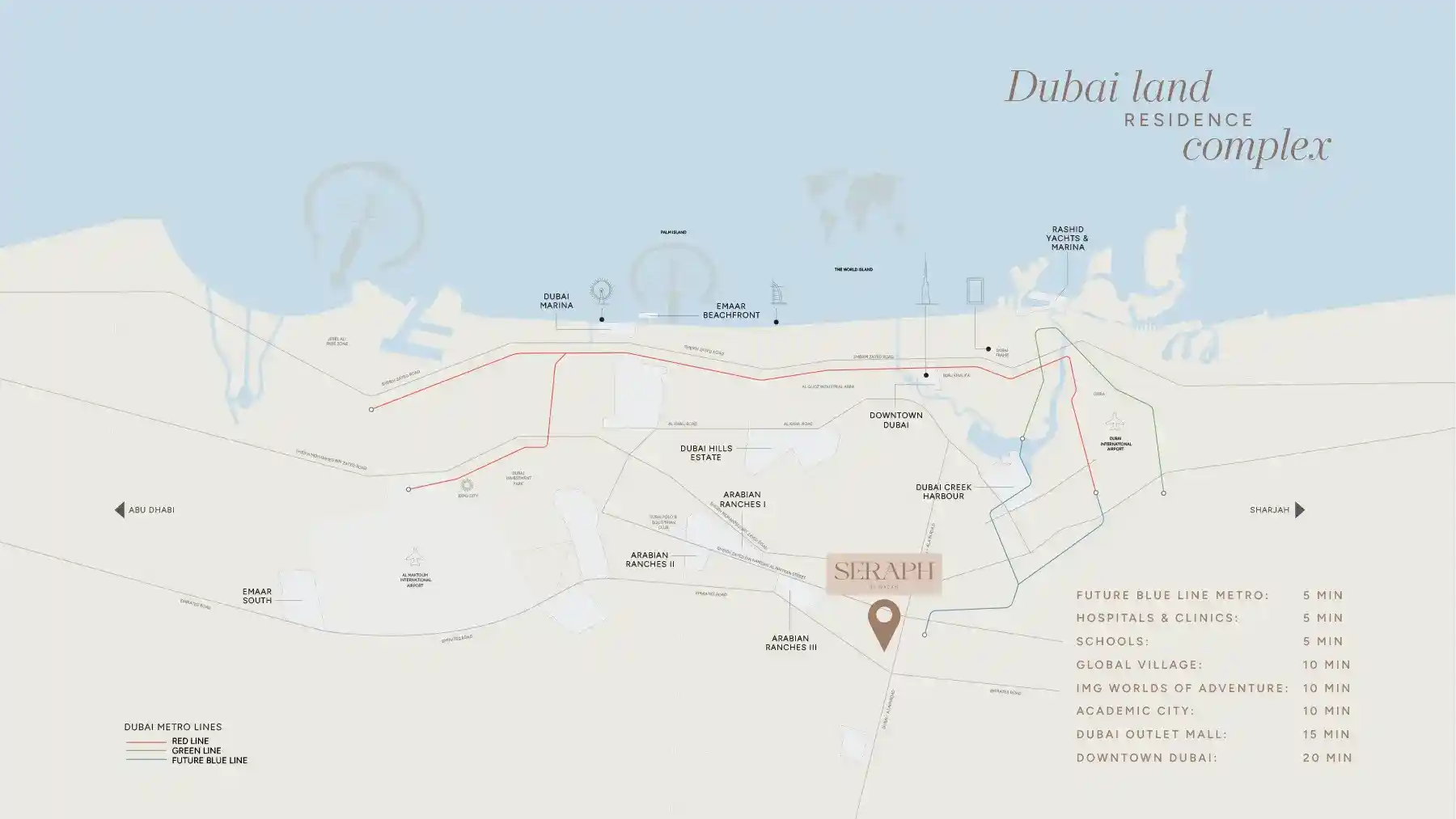 Seraph by Wadan is ideally situated in Dubailand Residence Complex (DLRC) — one of Dubai’s most connected and peaceful communities. It offers a lifestyle of accessibility and comfort, keeping daily essentials and leisure destinations close.