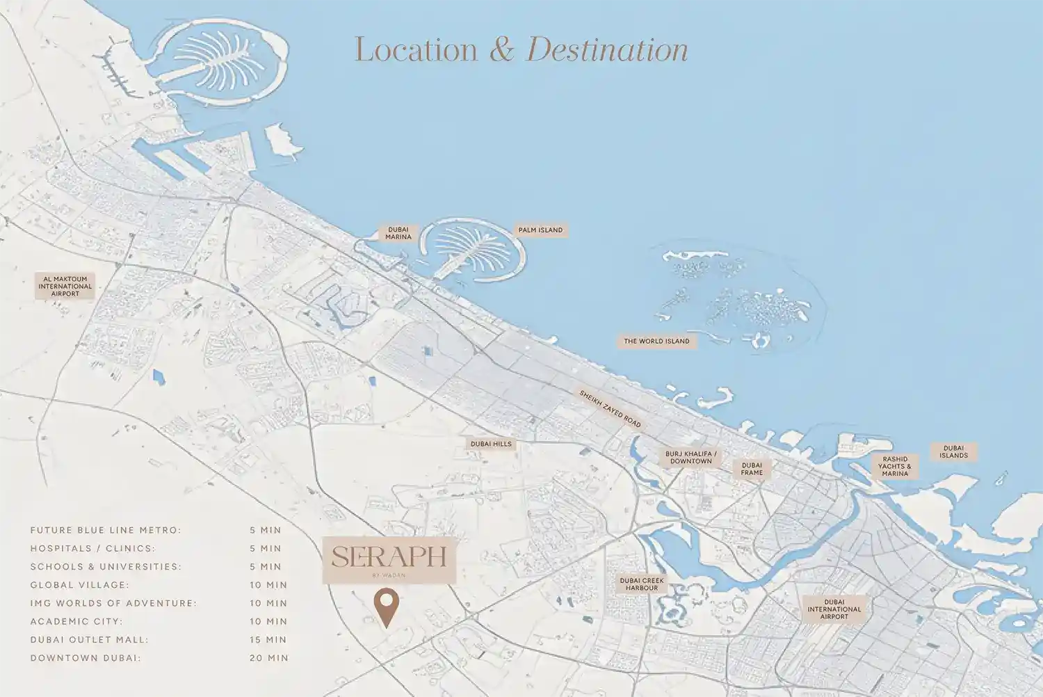 The master plan of Seraph by Wadan is designed to nurture wellness and balance. The architecture focuses on space, light, and connection, creating a low-density residential haven that feels open and calm.