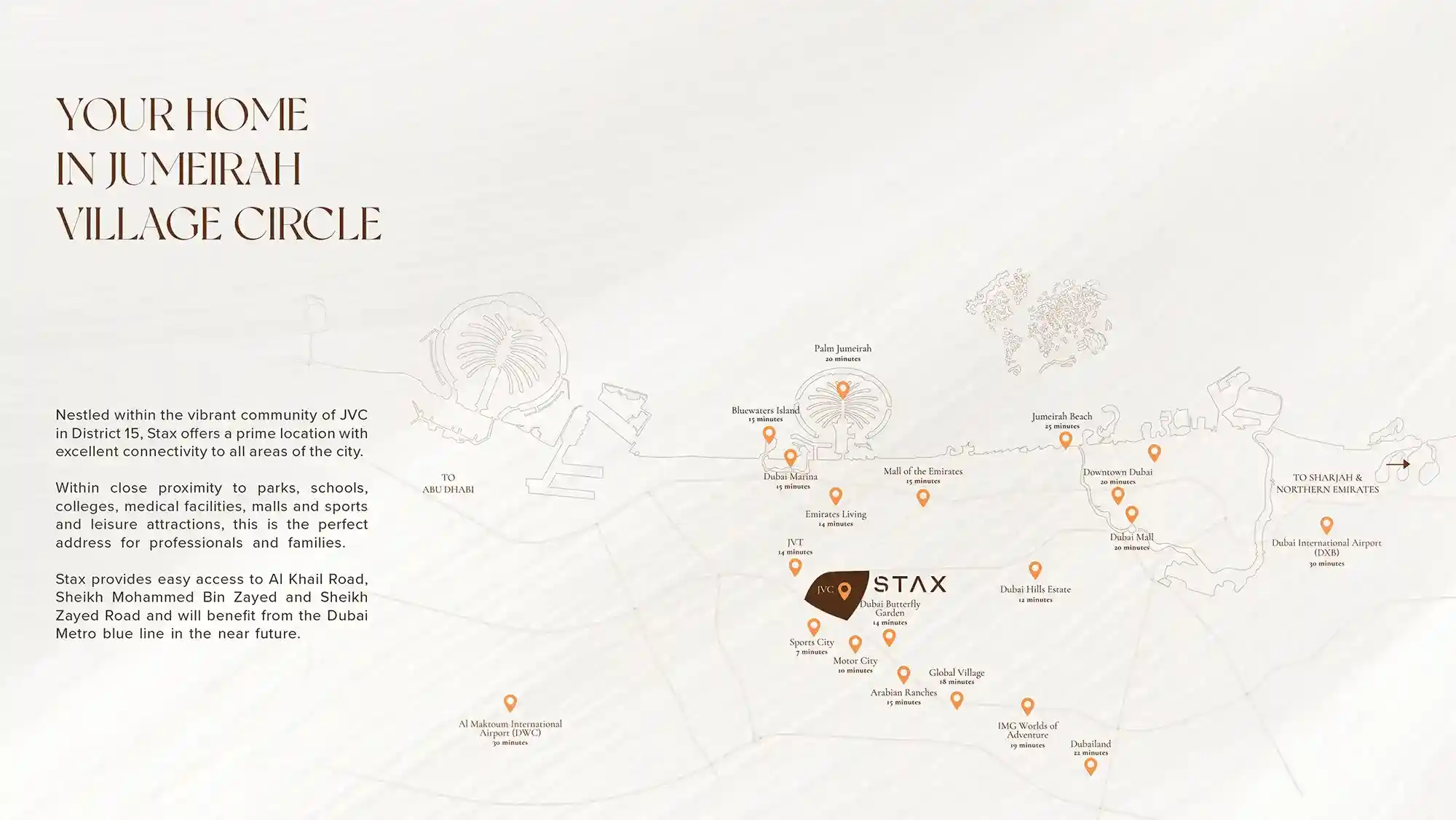 Located in the well-connected and family-focused community of JVC, residents enjoy quick access to parks, schools, dining outlets, wellness facilities, Circle Mall, and major highways. With Al Khail Road and Sheikh Mohammed Bin Zayed Road only minutes away, the address ensures easy travel across Dubai.