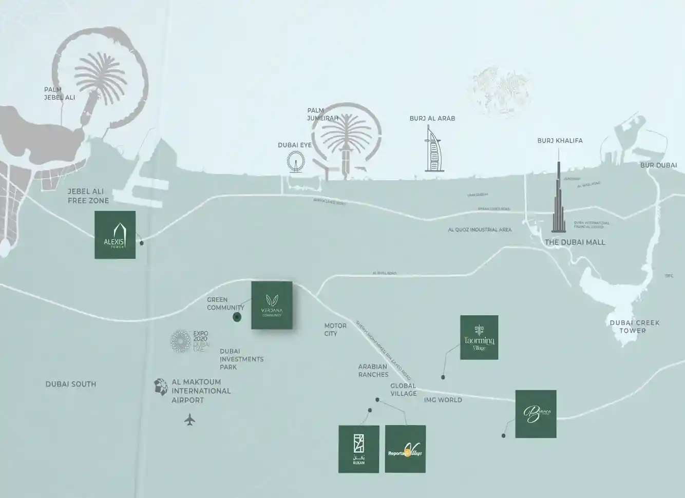 Verdana Residence 5 is strategically located in Dubai Investment Park, offering excellent connectivity across the city. Positioned near major road networks and key infrastructure, residents can easily access business hubs, entertainment destinations, and daily essentials.